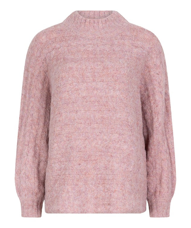 Deze prachtige kabeltrui van Esqualo is het perfecte item voor de koudere dagen. De trui heeft een zachte, fluffy structuur en een subtiele kabel in het breisel die zorgt voor een warme en stijlvolle uitstraling. De lichte roze tint geeft een vrouwelijke, frisse touch aan je najaarslook.