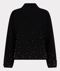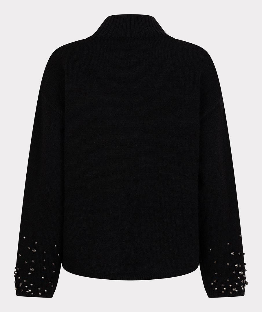 Stijlvolle warme trui met mooie parels aan de uiteindes van de mouwen en de onderzijde.
