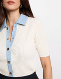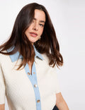 De zachte, comfortabele stof zorgt voor een fijne pasvorm, terwijl de denim kraag en goudkleurige knopen het vest een unieke en moderne uitstraling geven.